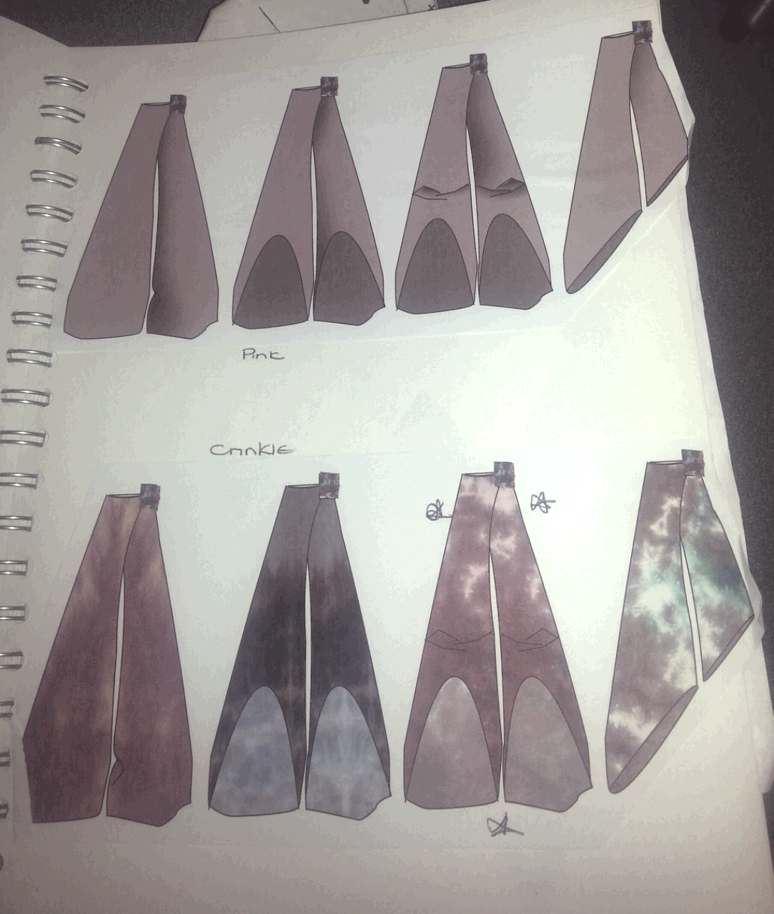 I like this process, but want to see if I will need to dye the fabric before cutting the pattern pieces or dying the pattern pieces. I will see how it works when I starch the fabric and try and fold it.Final Major - Design development