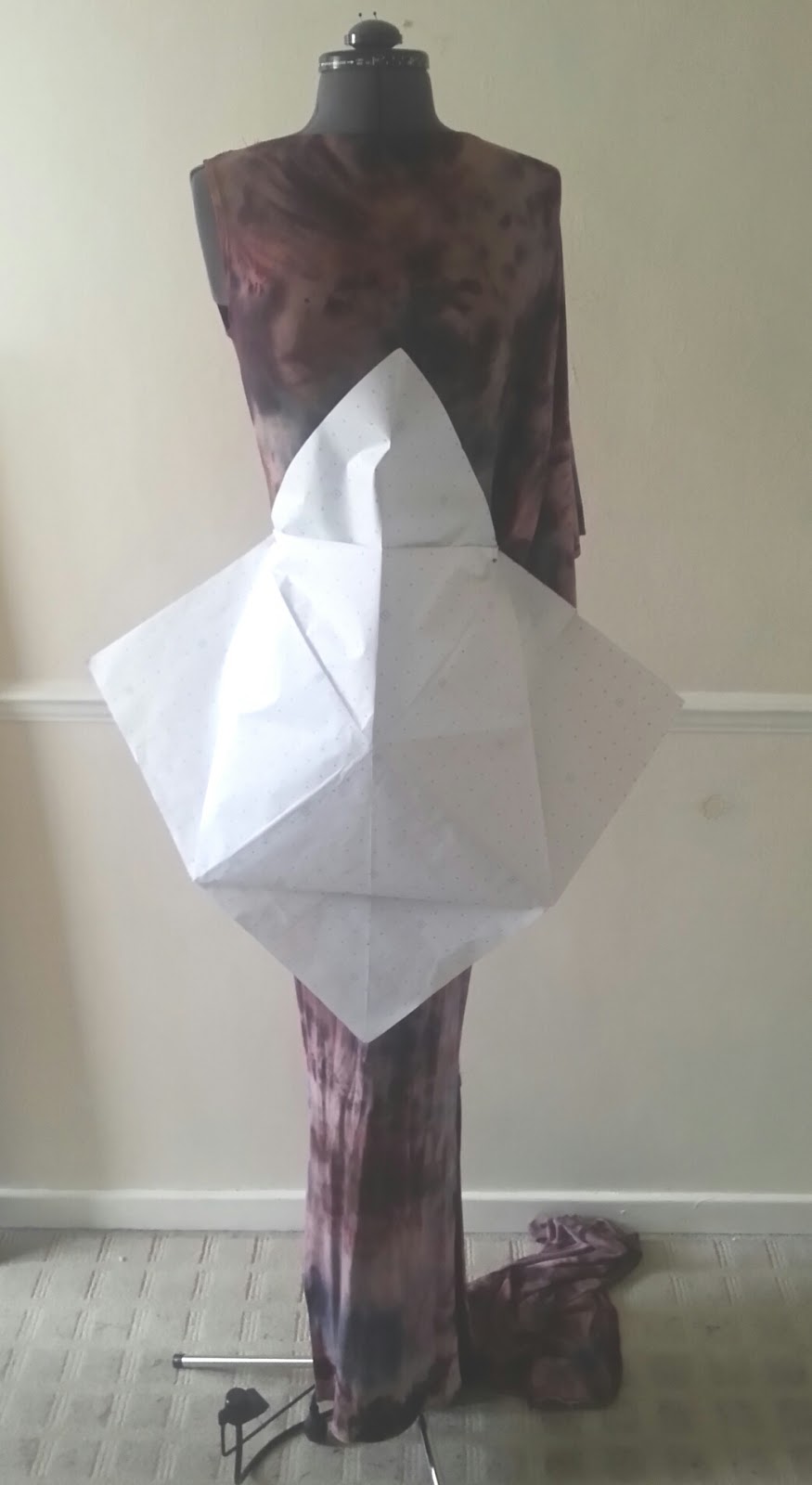 I need to also think about the large origami at the front and back. These can not be attached directly to the dress and the weight of the cotton origami will be too much for the jersey dress fabric.